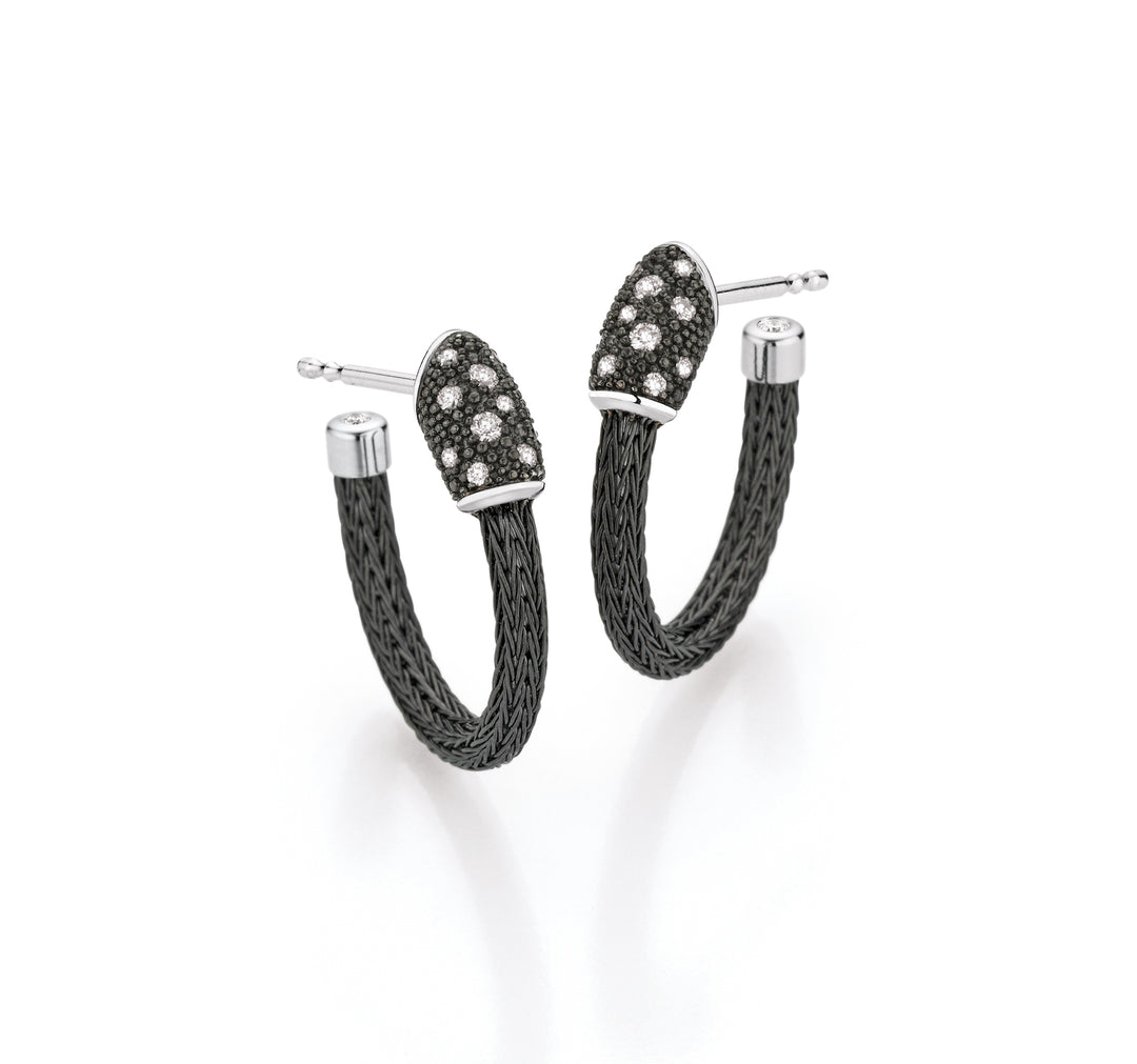 Jorg Heinz Black Mesh Hoop Diamond / White Gold Earrings